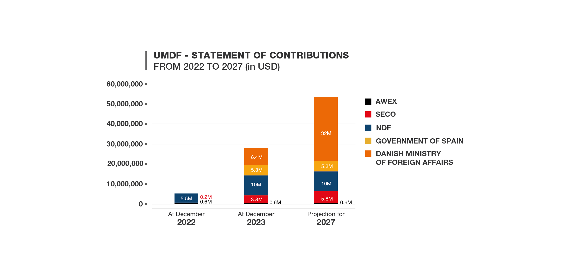 - The Danish Ministry of Foreign Affairs approved a donation of USD 32 million (DKK 220 million), of which USD 8.4 million were disbursed to the Fund in December 2023.