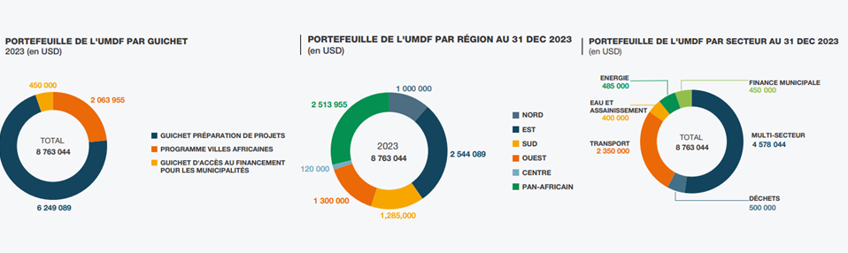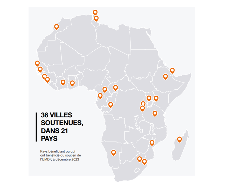 3. Par le biais du Guichet d'Accès des Municipalités au Financement (MAFW), le Fonds fournit une assistance technique à un certain nombre de villes pour améliorer leurs finances municipales, avec notamment pour objectif qu'elles puissent mobiliser des ressources qui leurs sont propres et renforcer ainsi leurs capacités à investir. En 2023, en partenariat avec Cités et Gouvernements Locaux Unis (CGLU) Afrique, l'UMDF a organisé des sessions de formation pour plus de 50 Directeurs Financiers Municipaux. En 2023 BAD a également parrainé ce rapport ,explorant les moyens de libérer le potentiel de la finance infranationale.